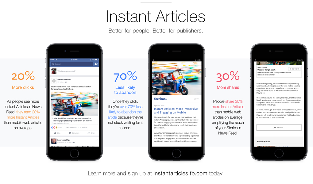 Αυτό είναι ένα μεγάλο βήμα για το Facebook και δυνητικά ένα μεγάλο πλήγμα στο Google Display Network. Τα πρώτα στατιστικά λένε πως τα instant articles παίρνουν 20% περισσότερα clicks, μοιράζονται 30% περισσότερο, και οι χρήστες είναι 70% λιγότερο πιθανό να εγκαταλείψουν το άρθρο πριν το διαβάσουν.