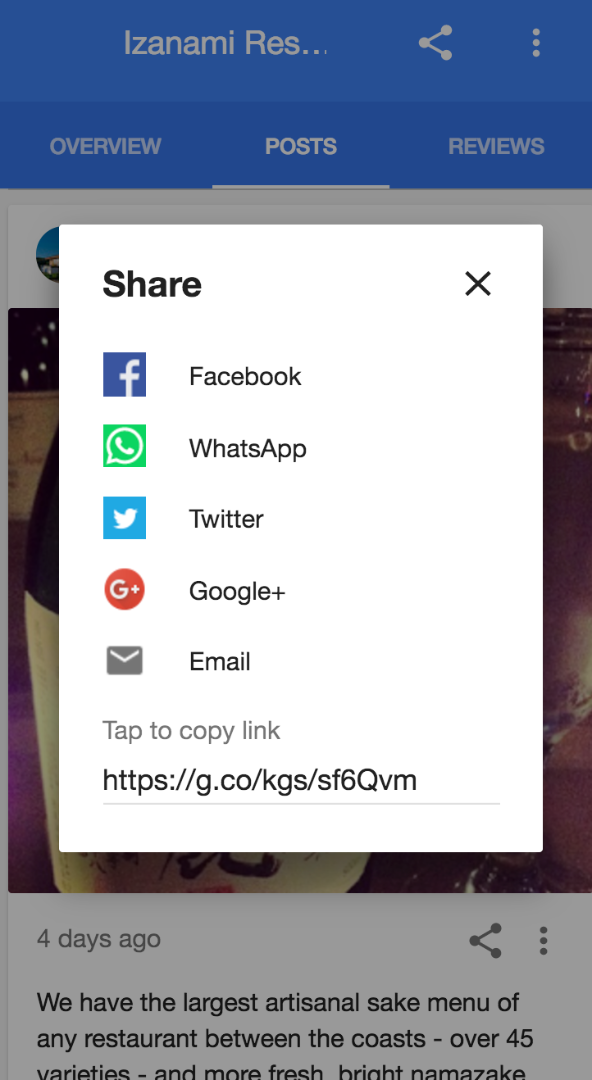Η Google δίνει την δυνατότητα στις επιχειρήσεις να κάνουν αναρτήσεις απευθείας στα αποτελέσματα του Knowledge Panel δημιουργώντας μια ανάρτηση από 100 έως 300 λέξεις συμπεριλαμβανόμενης και μία φωτογραφίας. Η ανάρτηση μπορεί να χαρακτηριστεί ως «Εκδήλωση» που αφορά συγκεκριμένες ημερομηνίες ή να προστεθεί ένα call to action κουμπί το οποίο που θα παραπέμπει σε μια άλλη ιστοσελίδα που θα έχει επιλέξει η επιχείρηση.