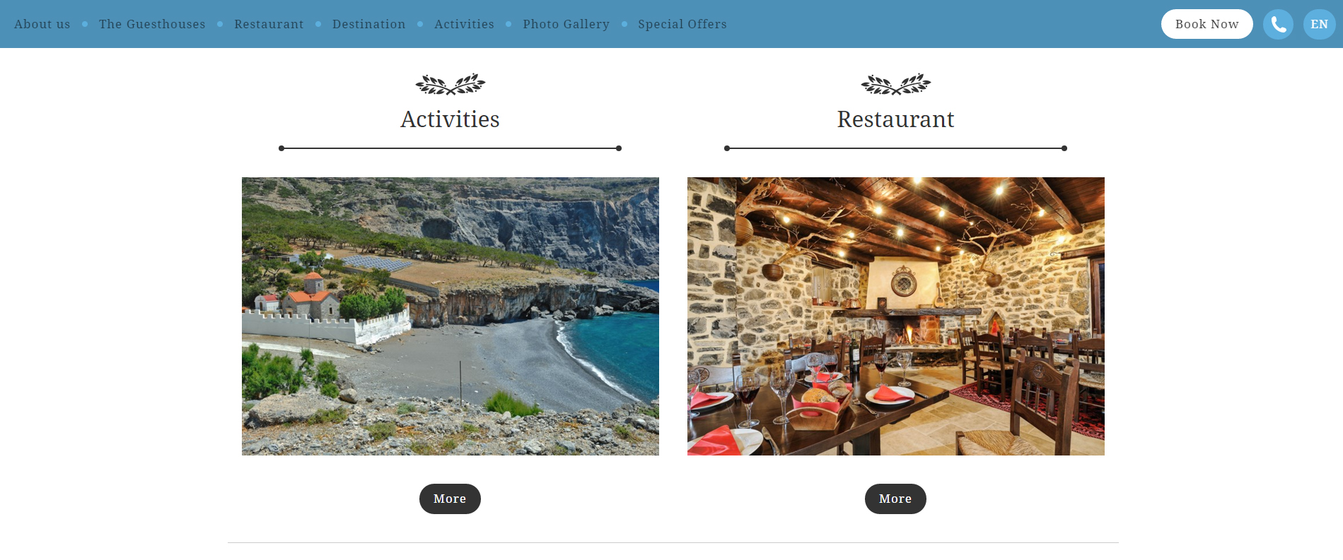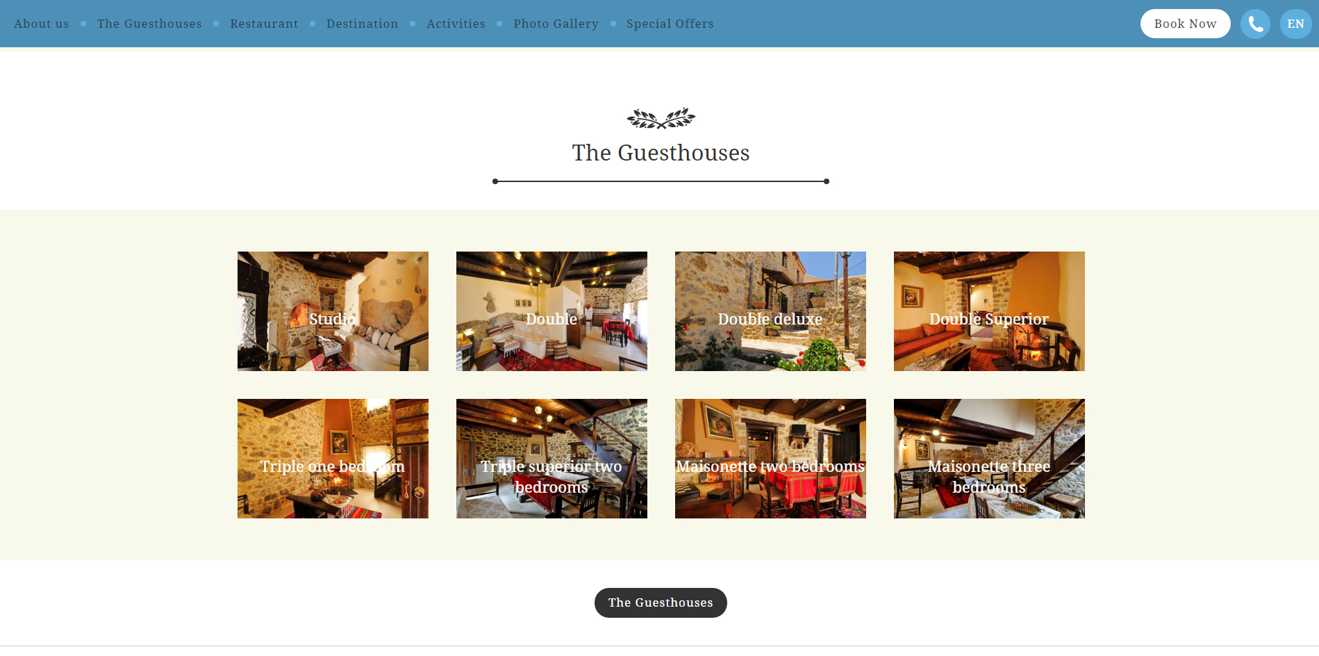 Μπορείτε να περιηγηθείτε στις εγκαταστάσεις, να ενημερωθείτε για τις υπηρεσίες αλλά και για τις πολλές επιλογές για δραστηριότητες που προσφέρει η περιοχή, και φυσικά να κάνετε online κράτηση με απλό και ασφαλή τρόπο!