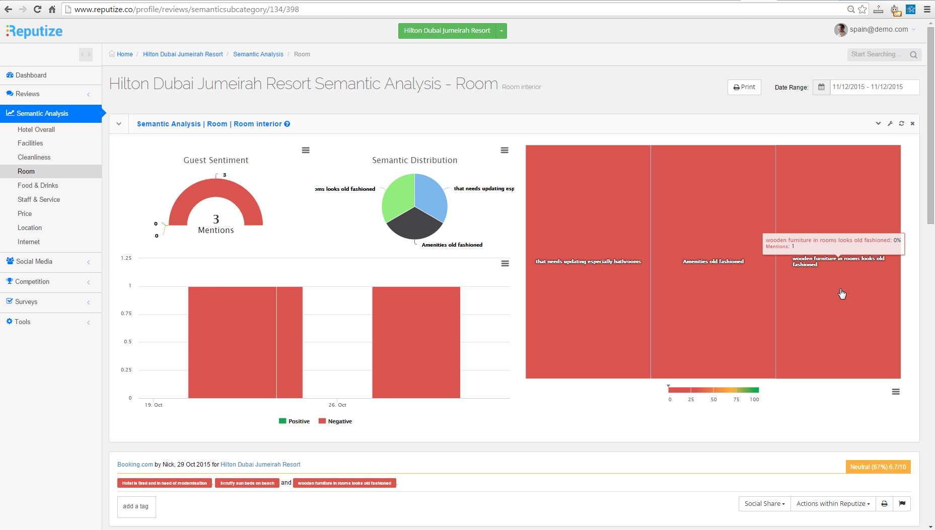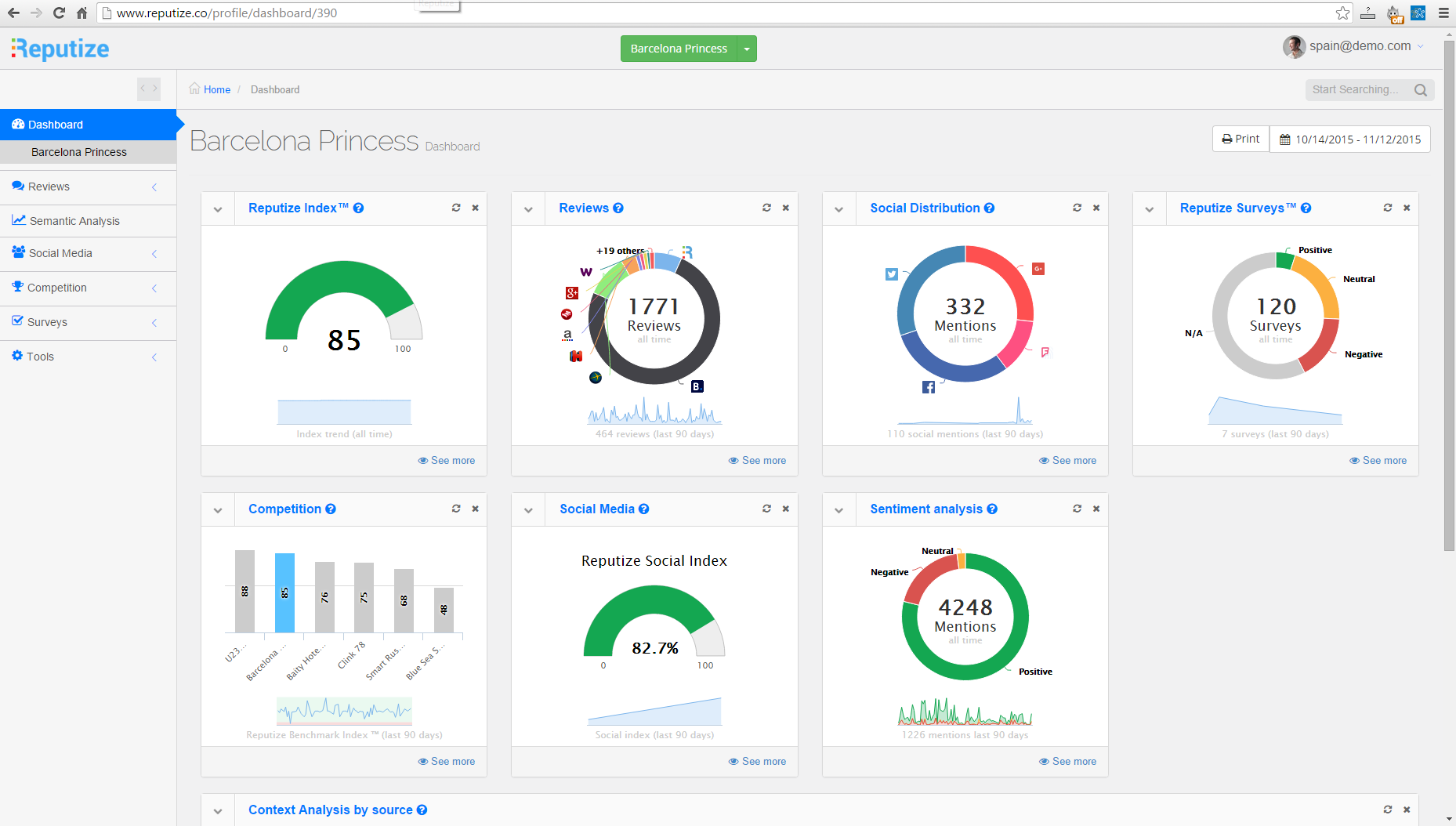 Ερευνήστε την απόδοση του ξενοδοχείου σας σε σχέση με τους σημαντικότερους ανταγωνιστές σας, με τα προηγμένα analytics του Reputize και το Reputize Index ™.