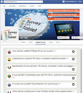 Το SurveyOnTablet είναι μια μοναδική υπηρεσία που σχεδιάστηκε και αναπτύχθηκε από εξειδικευμένους επαγγελματίες και επιτρέπει στους πελάτες να παρέχουν πληροφορίες, να αναφέρουν προβλήματα και να εκφράζουν τη γνώμη τους σε πραγματικό χρόνο στο σημείο που έχουν επιλέξει για την εμπειρία τους, απλά μέσω ενός tablet!