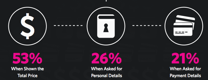 Οι άλλοι δύο λόγοι –προσωπικά στοιχεία ή πληροφορίες πληρωμής- ίσως να είναι μια λογική εξήγηση για να βγει από το site και να συγκρίνει, αλλά ίσως επίσης να έχει να κάνει με προβλήματα με το σχεδιασμό της φόρμας, ή η έλλειψη στις προτεινόμενες επιλογές πληρωμής.