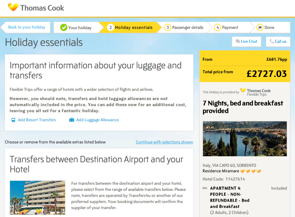 Βέβαια, το Thomas Cook περιμένει από τους ανθρώπους να επενδύσουν χρόνο και προσπάθεια για να εισάγουν τις πληροφορίες όλων όσων ταξιδεύουν, χωρίς να επιβεβαιώσουν το συνολικό κόστος.