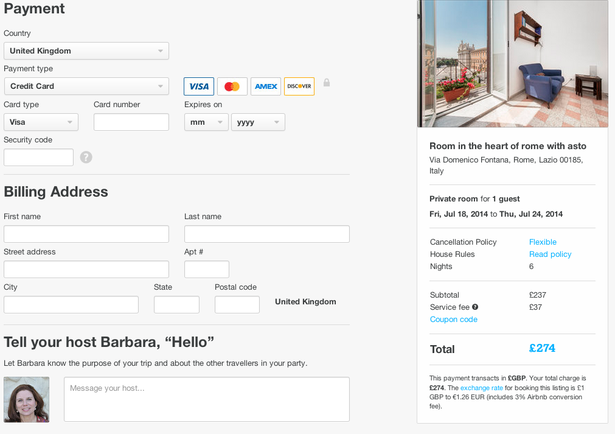 Το checkout της AirBnB είναι ένα καλύτερο παράδειγμα. Δείχνει το συνολικό κόστος νωρίς στη διαδικασία και το υπενθυμίζει συνεχώς στους πελάτες.